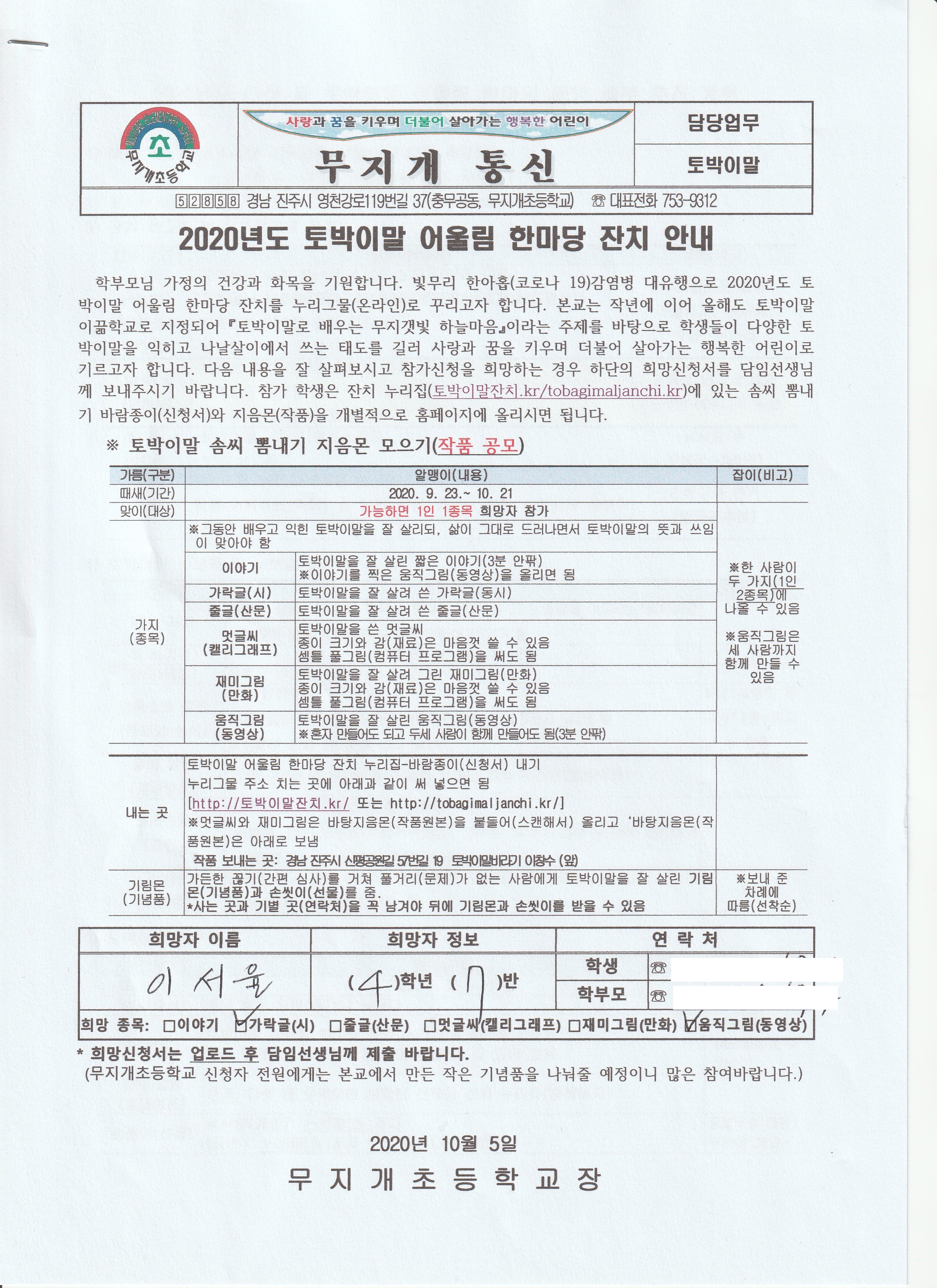 토박이말 살리기 이름쓰기(서명운동)